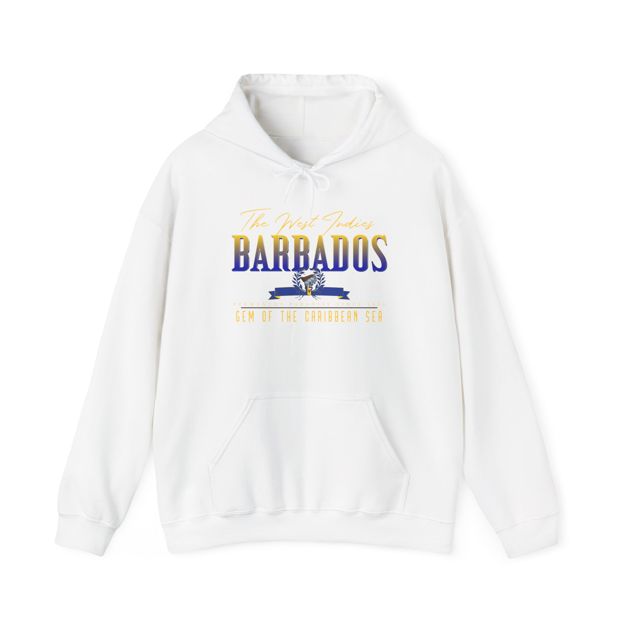 Soft, warm, and quietly nostalgic — this hoodie carries a sun-washed Barbados vibe in a lightweight, durable sweatshirt. The front features a classic, travel-inspired design in blue and gold tones that reads like a postcard: elegant lettering, a small island motif and a subtle tagline beneath. Wear it on breezy evenings, on morning walks to the shore, or curled up with a book. The roomy kangaroo pocket and double-lined hood keep hands and head cozy. Built to last and easy to layer, it ages well and feels like a favorite from the first wear.