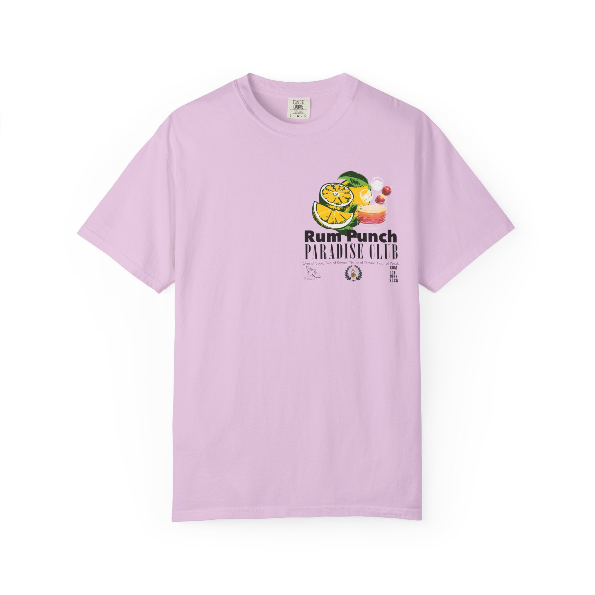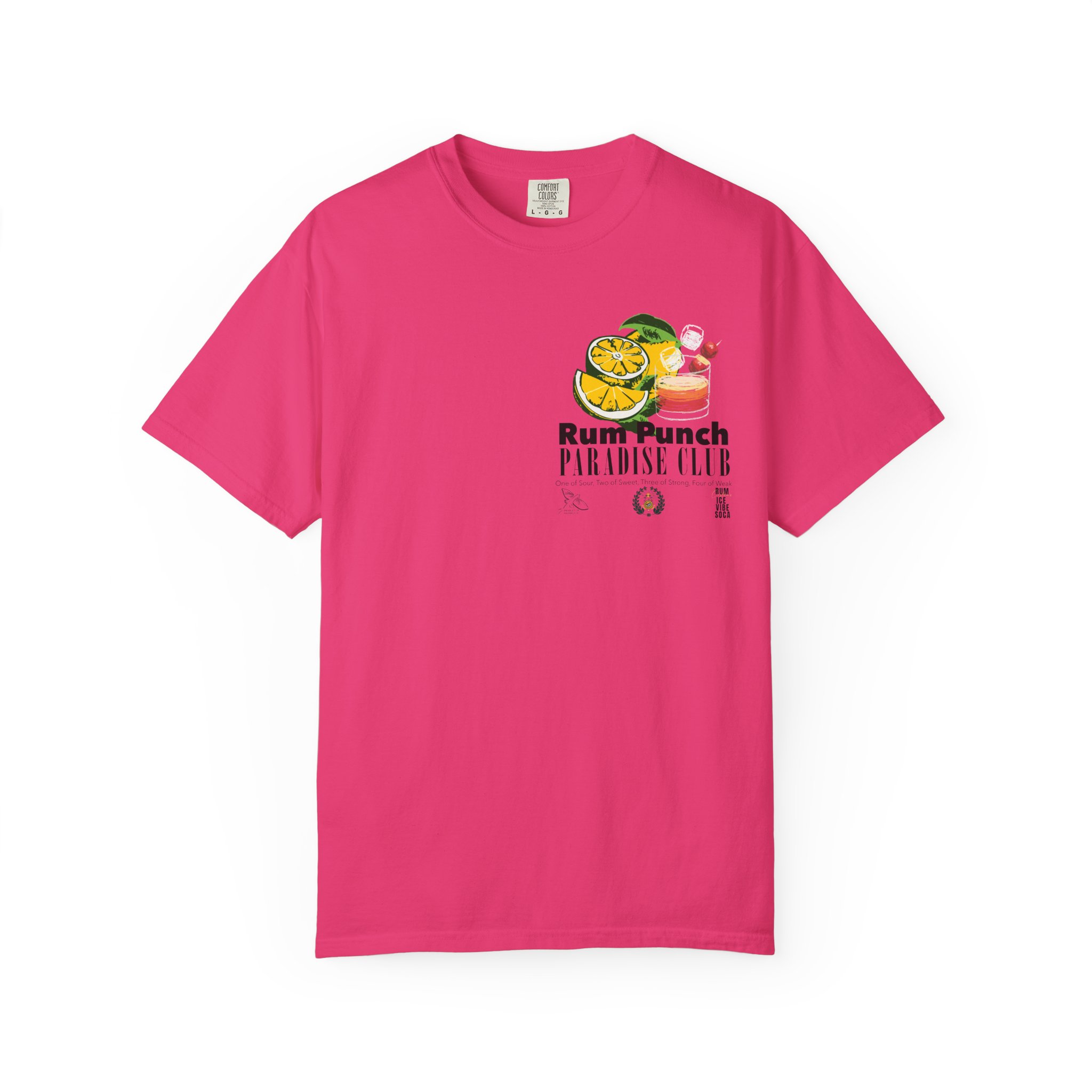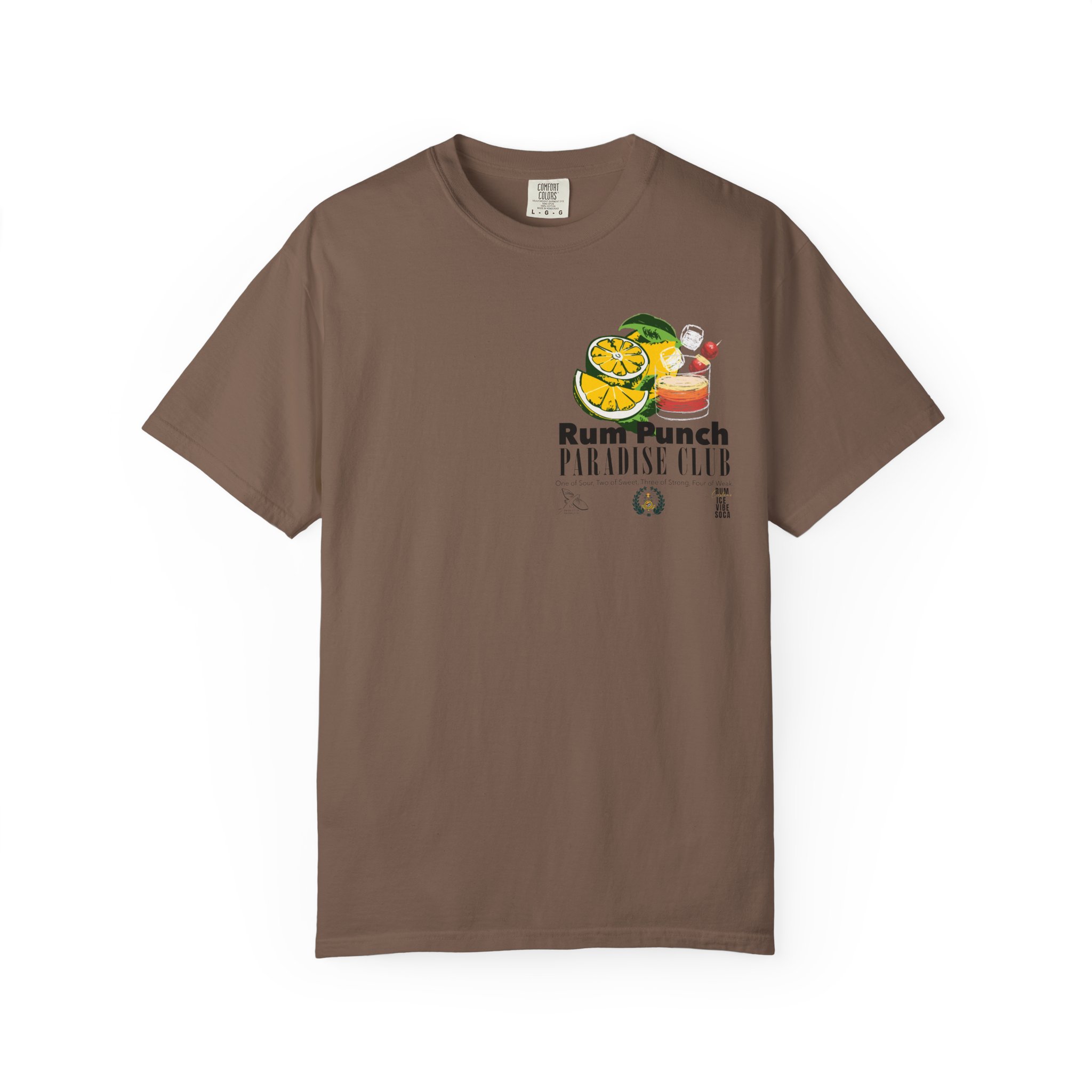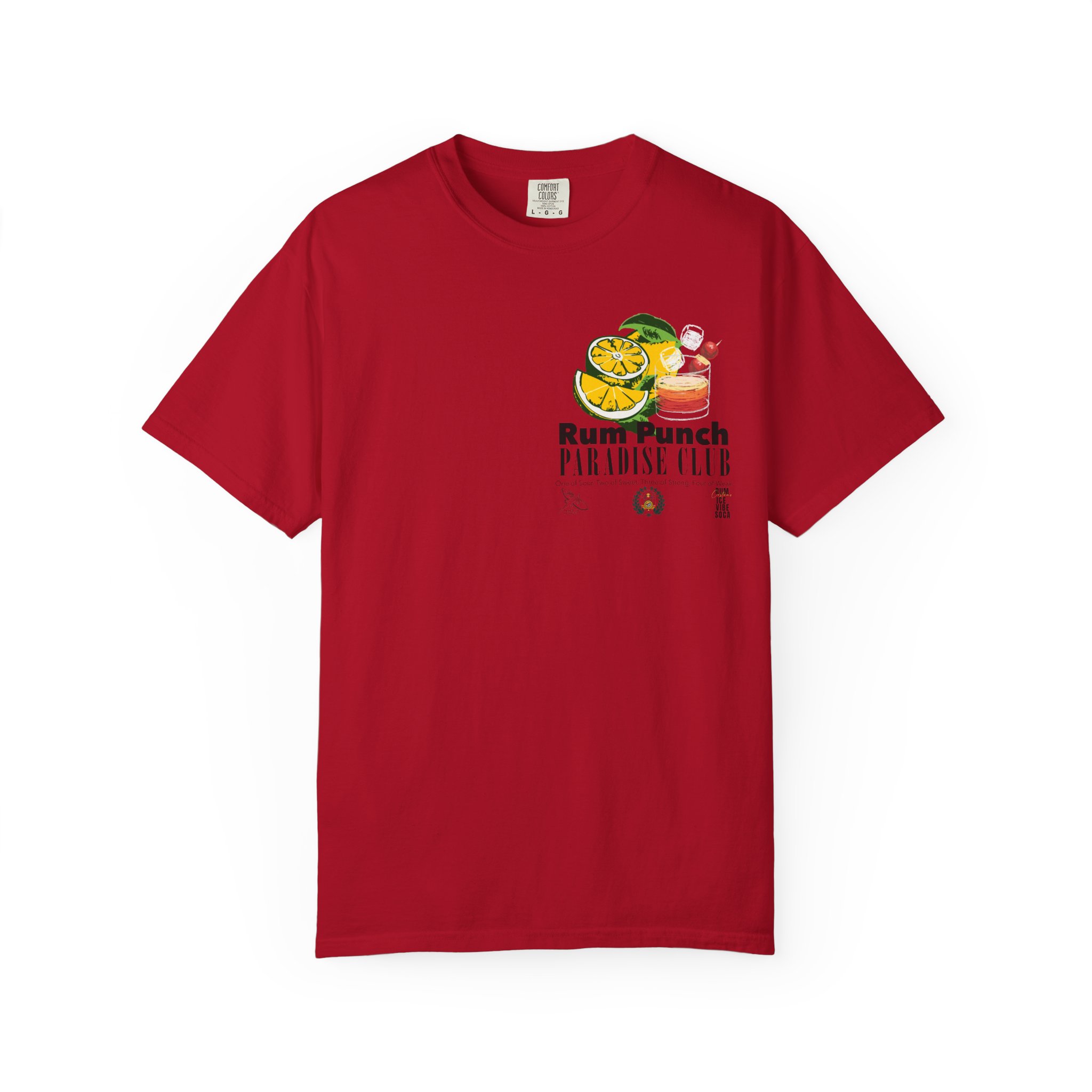 Bring a little slice of sun-soaked coast into everyday wear. This garment-dyed tee carries a subtle rum punch graphic over the heart and nods to the Permanent Paradise Caribbean Apparel collection —