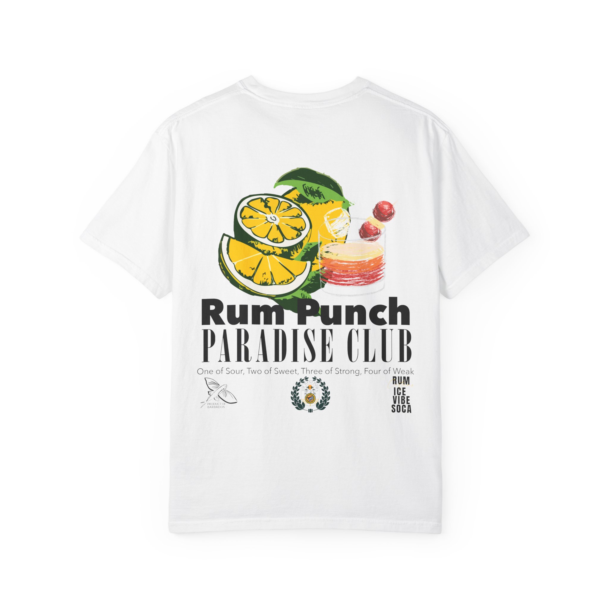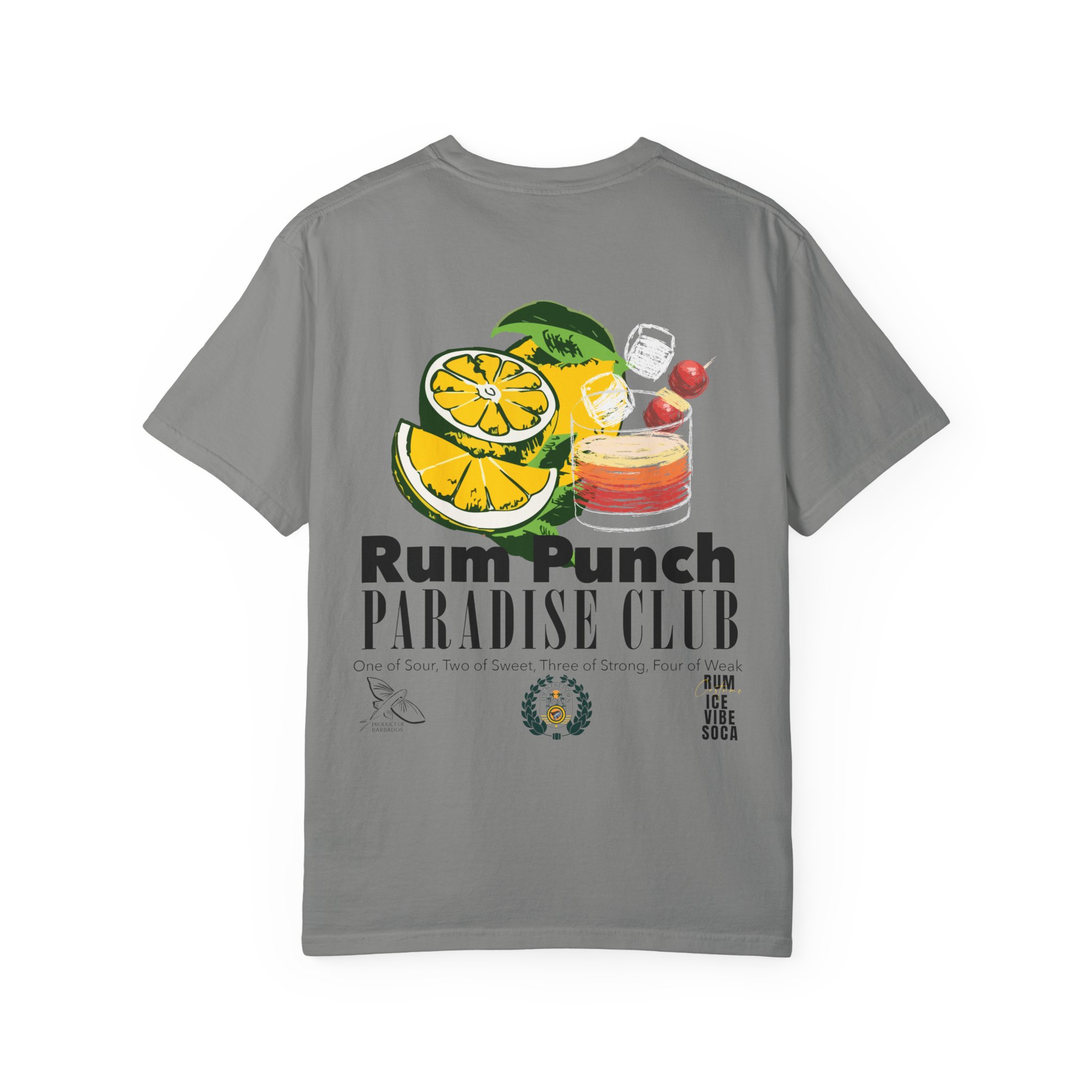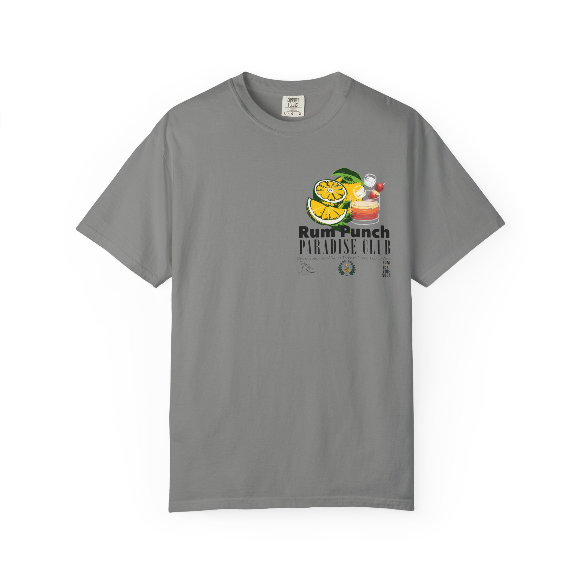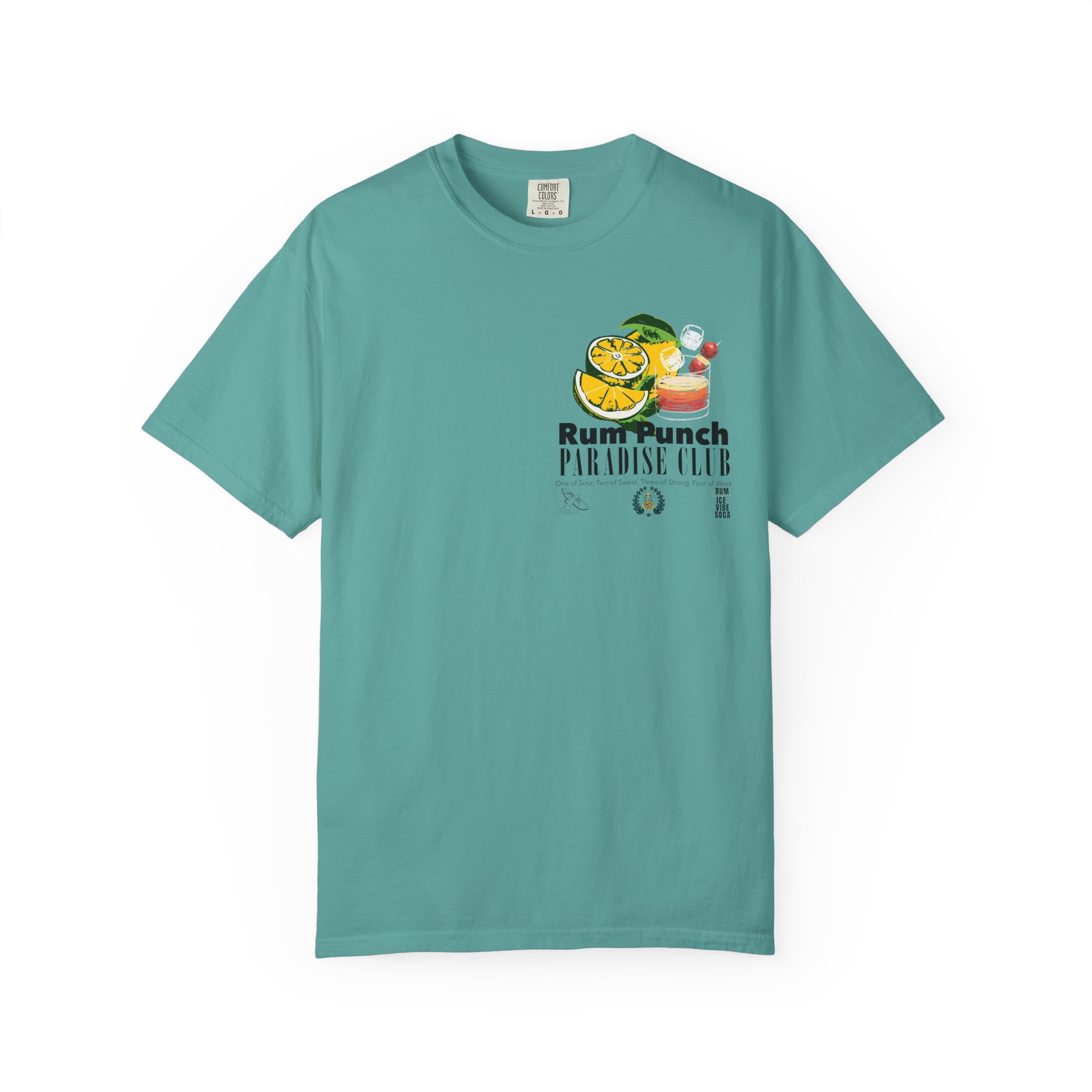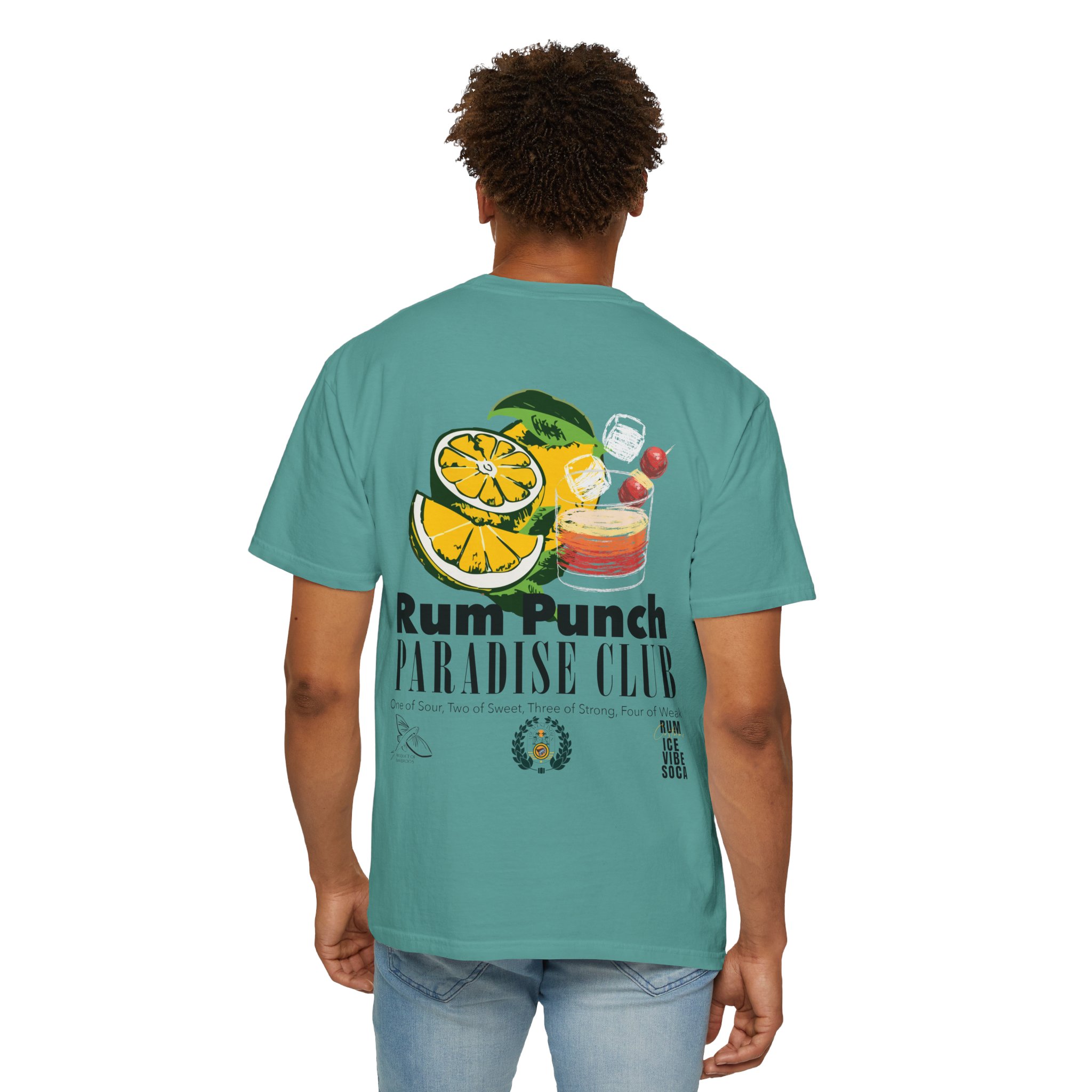Bring a little slice of sun-soaked coast into everyday wear. This garment-dyed tee carries a subtle rum punch graphic over the heart and nods to the Permanent Paradise Caribbean Apparel collection —