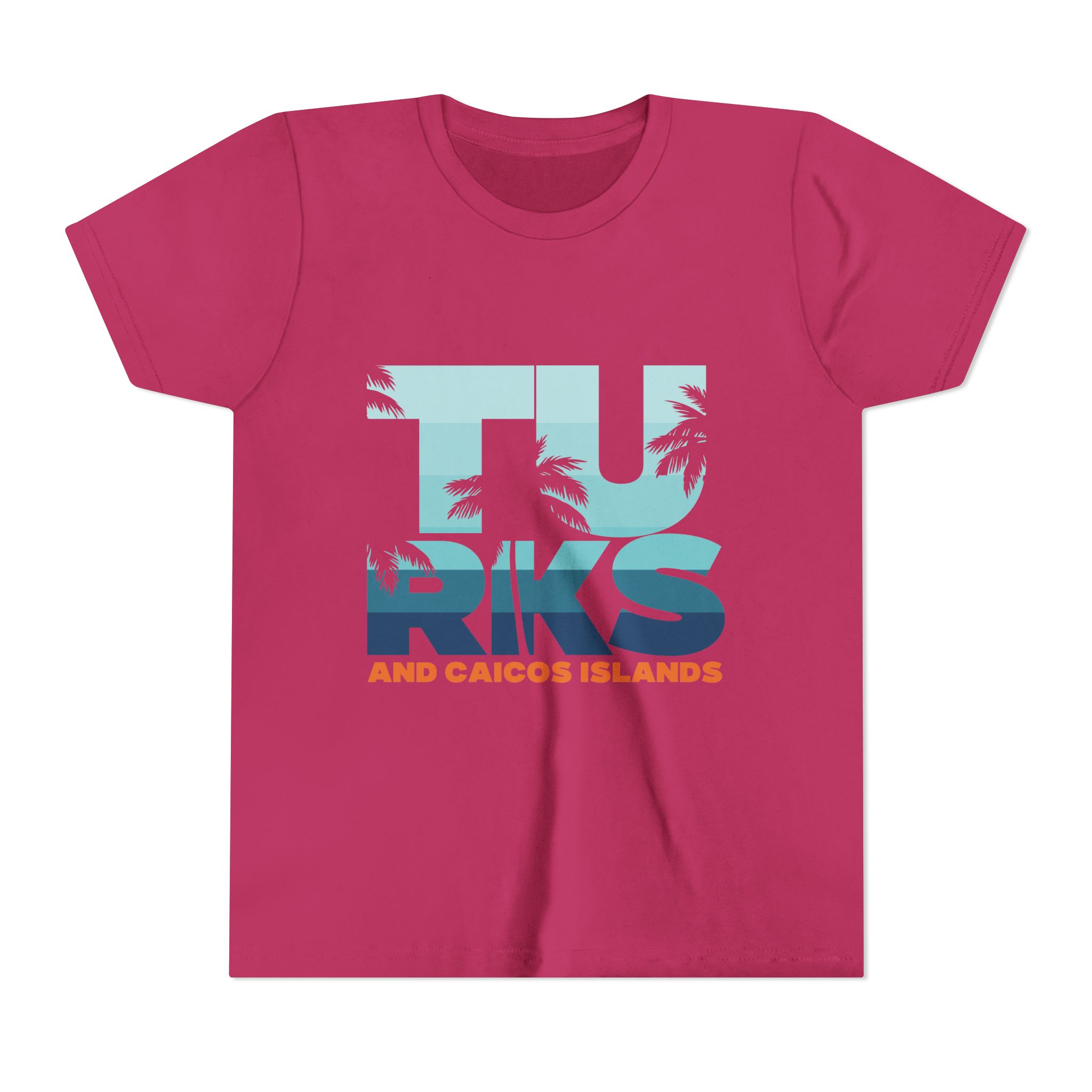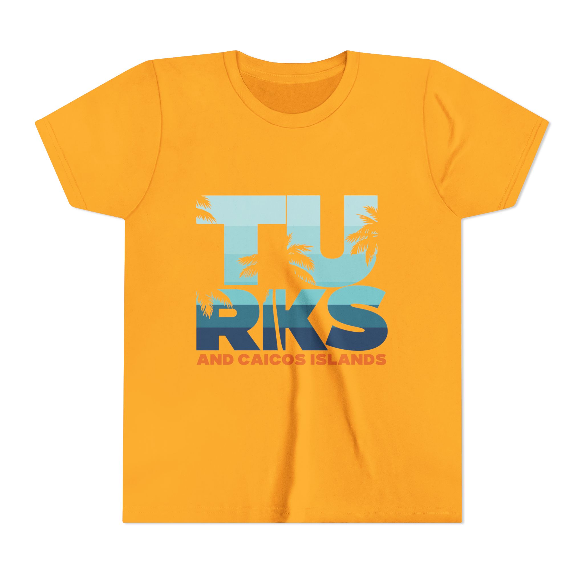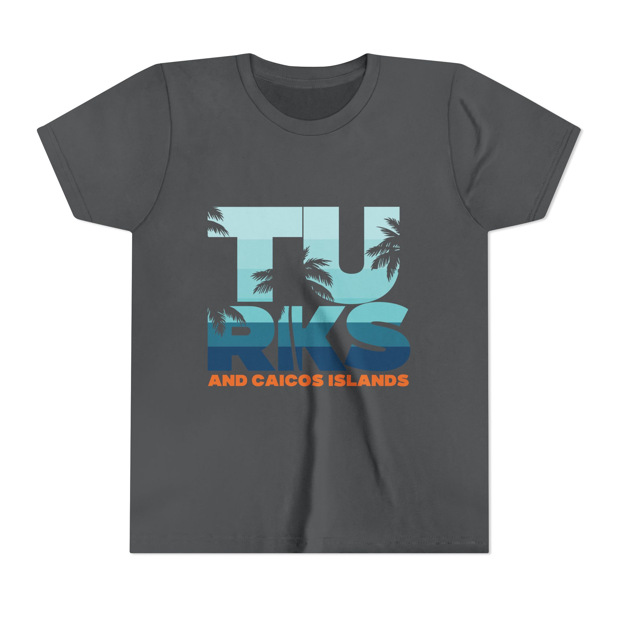 This lightweight youth tee brings a little bit of island breeze to everyday play. The front features a bold, beach-inspired graphic with palm silhouettes and layered ocean tones that feel like a quick daytrip to turquoise water and warm sand. Soft, airlume-combed ring-spun cotton keeps little ones comfy through playground adventures and lazy afternoons. Clean crew neckline and a retail fit make it simple to layer under a hoodie or wear solo when the sun comes out.